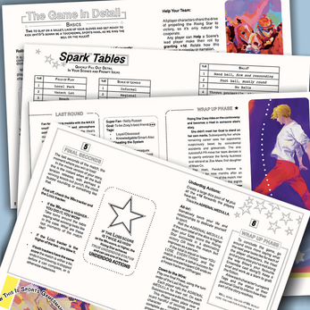 This is a cooperative story-driven game in which the players write, star and direct their own thrilling clash of a Rising Star against a formidable rival.